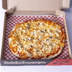 Salsa de tomate San Marzano artesanal, queso mozzarella, pollo y champiñón